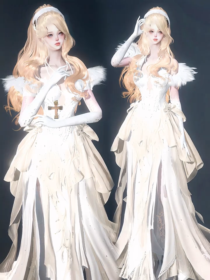 金发、白裙,再配上亮晶晶的配饰!好一位俏丽的女子!