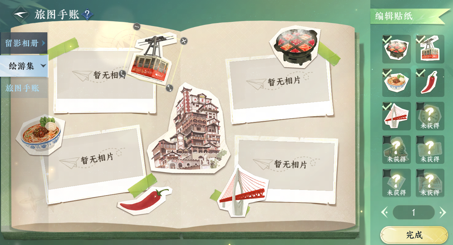 同时完成呼吸任务还可获得城市贴纸和专属印记贴纸合集。在关卡内拍照点留下的珍贵时刻将会上传至旅图手账中,还可用贴纸对手账进行装饰哦!