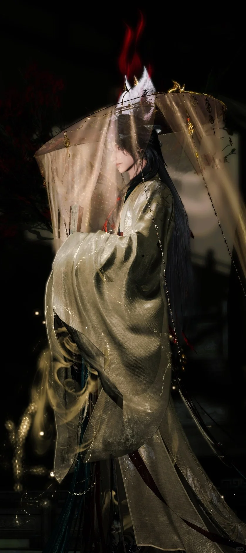 | 素材来源:小红书玩家@Charles 配饰【幽纱缚金】获取方式:武林风云录【侠影丹心】 |