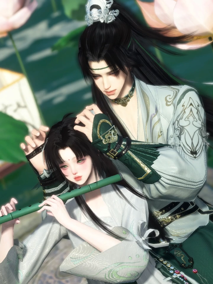 忙着吹笛的姑娘头发乱了也无需担心,自有人帮忙绾发。