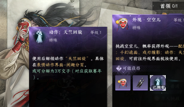 都说“帅是一种感觉”。在通关英雄空空儿副本后,有几率获得趣味动作:天竺回旋。