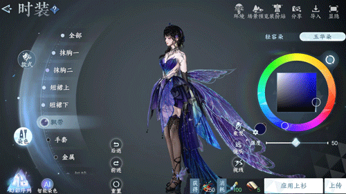 时装上布料区域的染色色盘,新增显色【强度】滑竿。现在,大家可以通过该滑竿来精细调节布料上的显色,使得各种时装、各种布料的高光色、质感、纹理和多色渐变等细节,可根据滑竿适当保留。