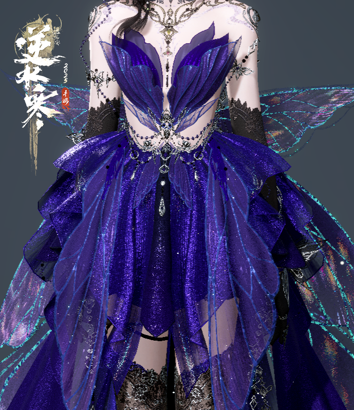 小寒也在游戏中染了一些不错的效果,蝴蝶饰品的内部结构、裙摆的渐变,都可以保留下来了: