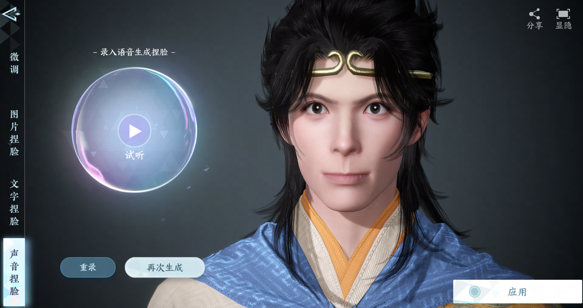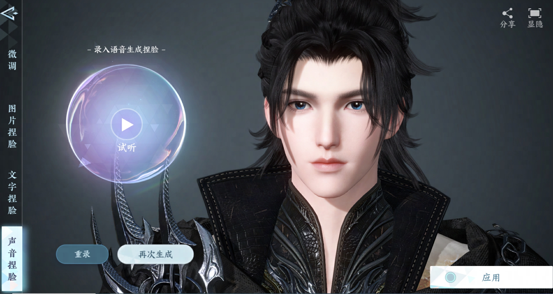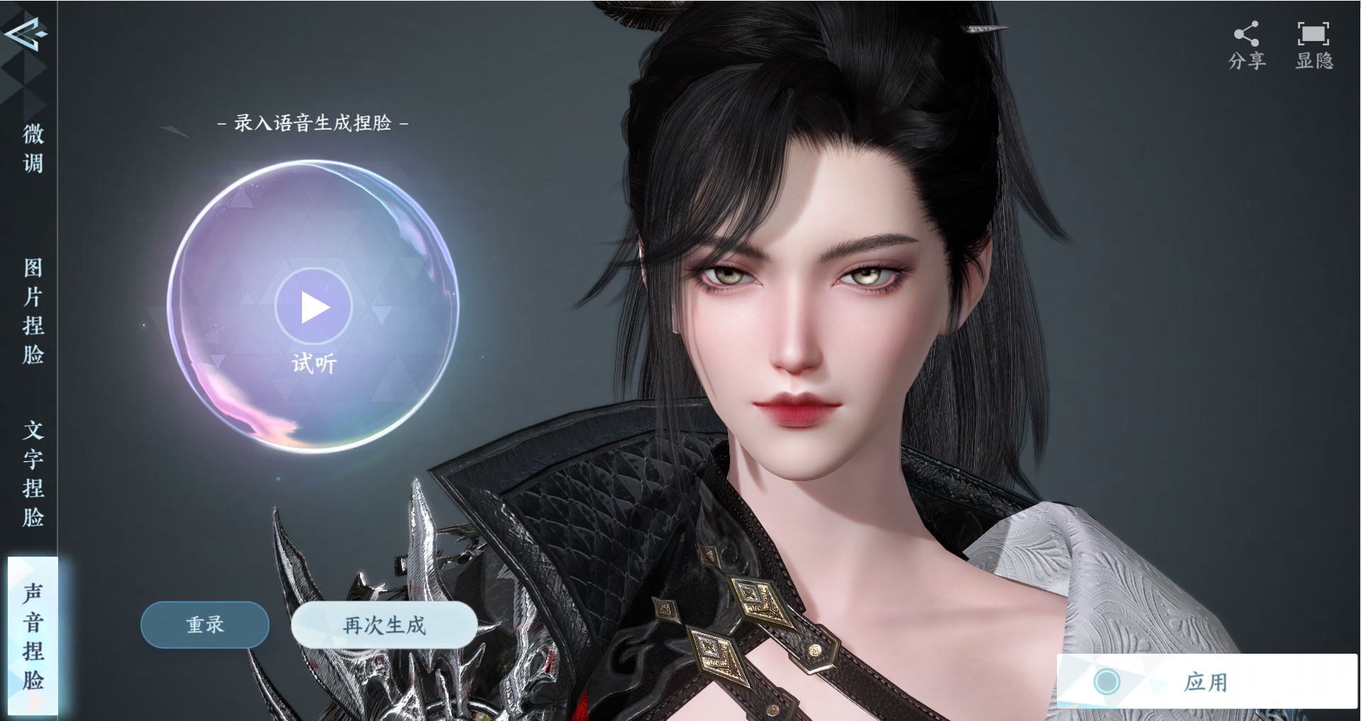 不止音色,您可以尝试各类角色的台词,系统会根解背后的角色灵魂来捏脸。