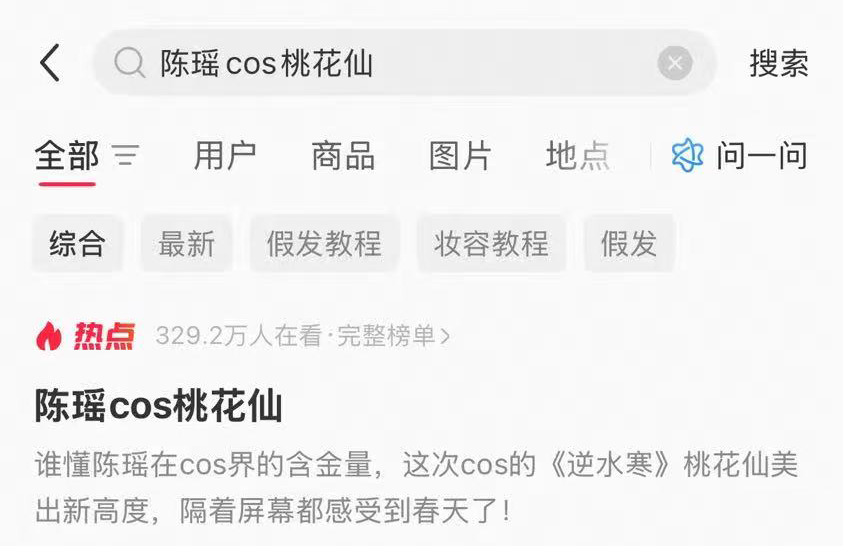 游戏外,小寒在网上冲浪时惊喜发现:陈瑶一袭cos宛若桃花仙人坠凡尘,在小红书掀起“古风仙气”热浪。