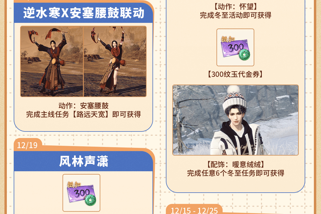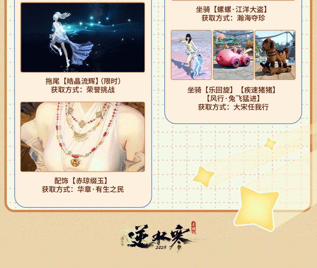 在新版本的20天内,还有不少能轻松获取的奖励!配饰、坐骑、动作,拿到手软!