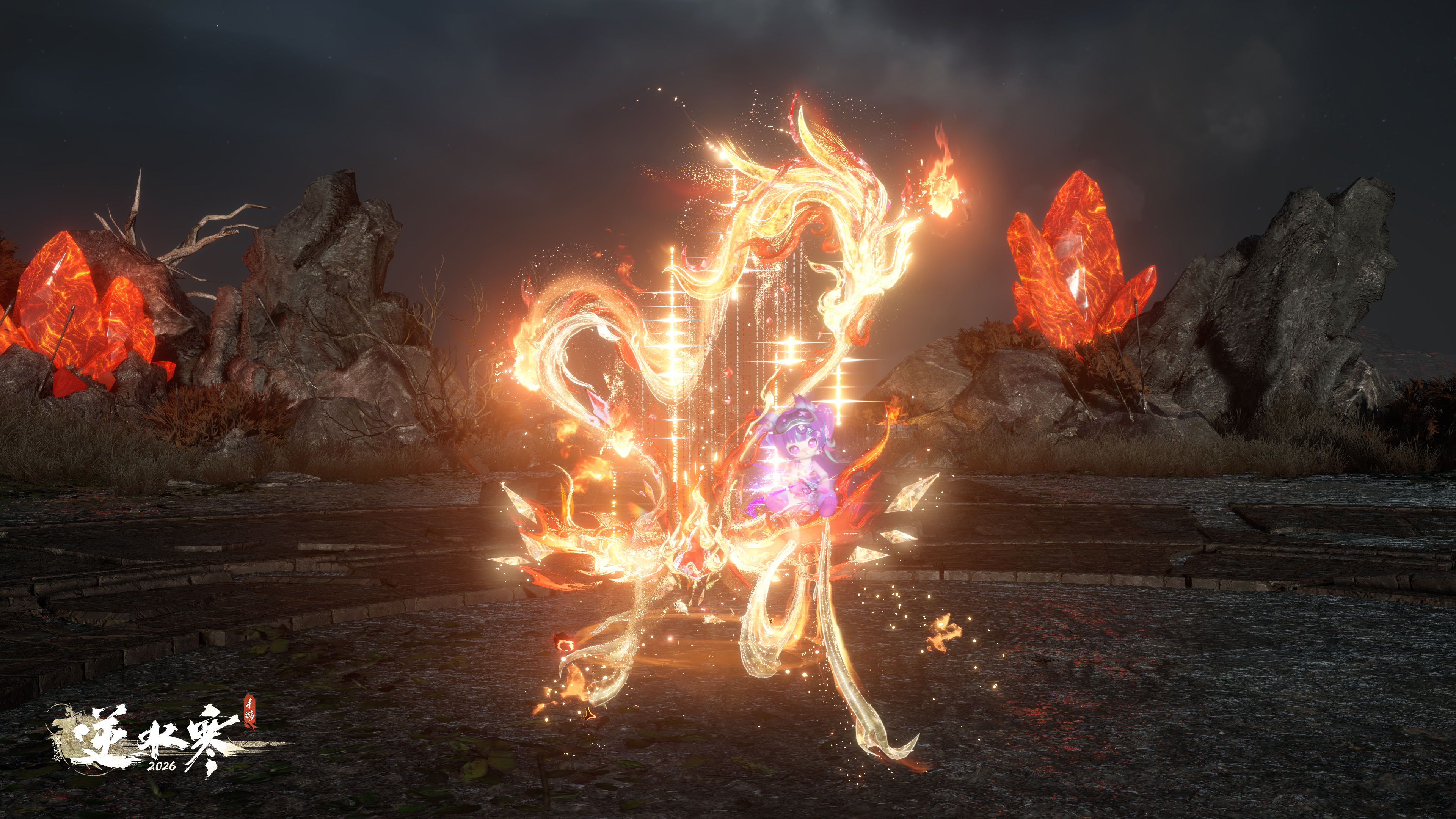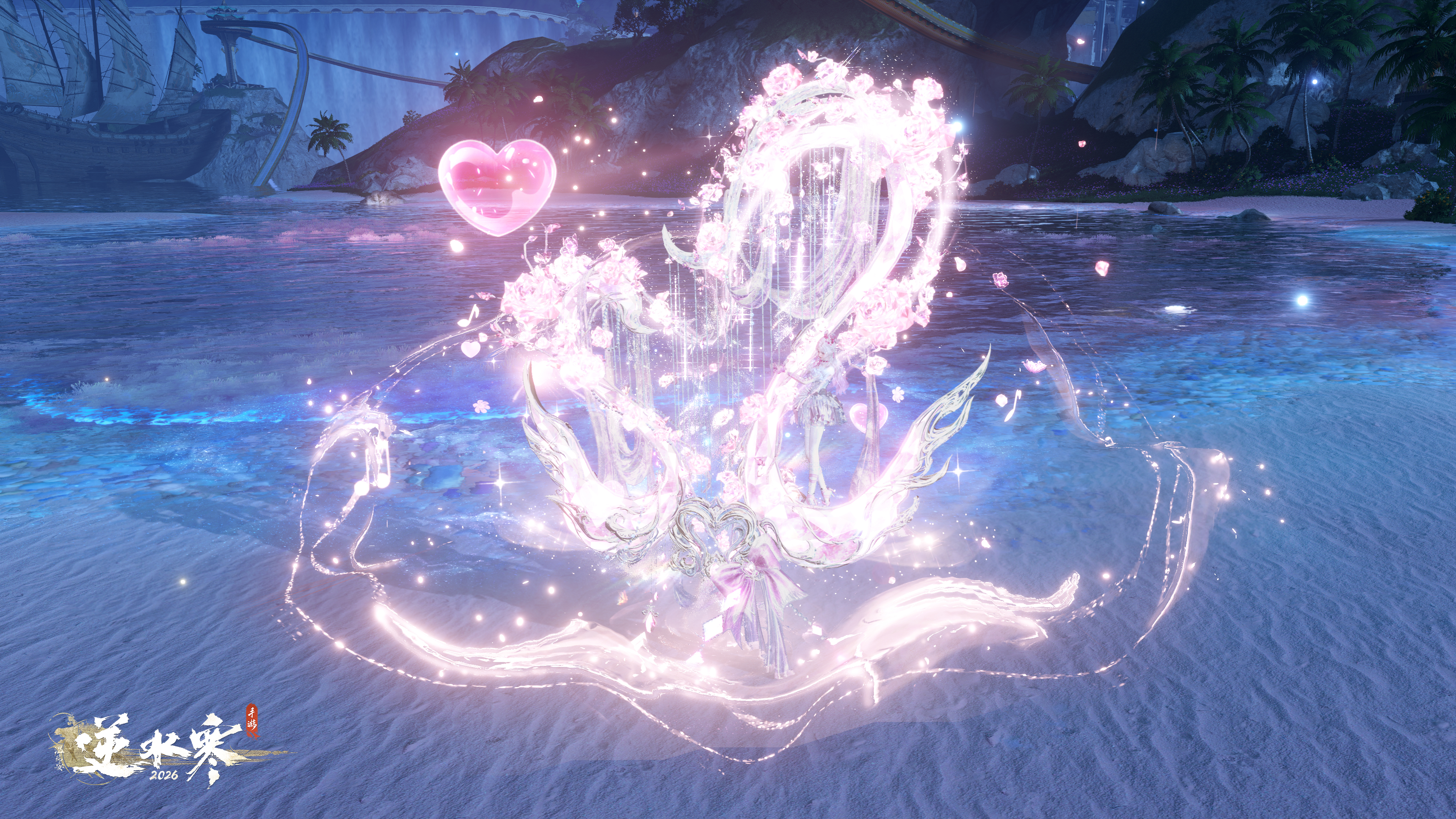 2026年1月1日8点后——2月6日0点,逆水寒全新竖琴主题祥瑞【永焰炽歌】将限时上架神石鉴华商城,各位同门也可使用4枚天赏石进行兑换。