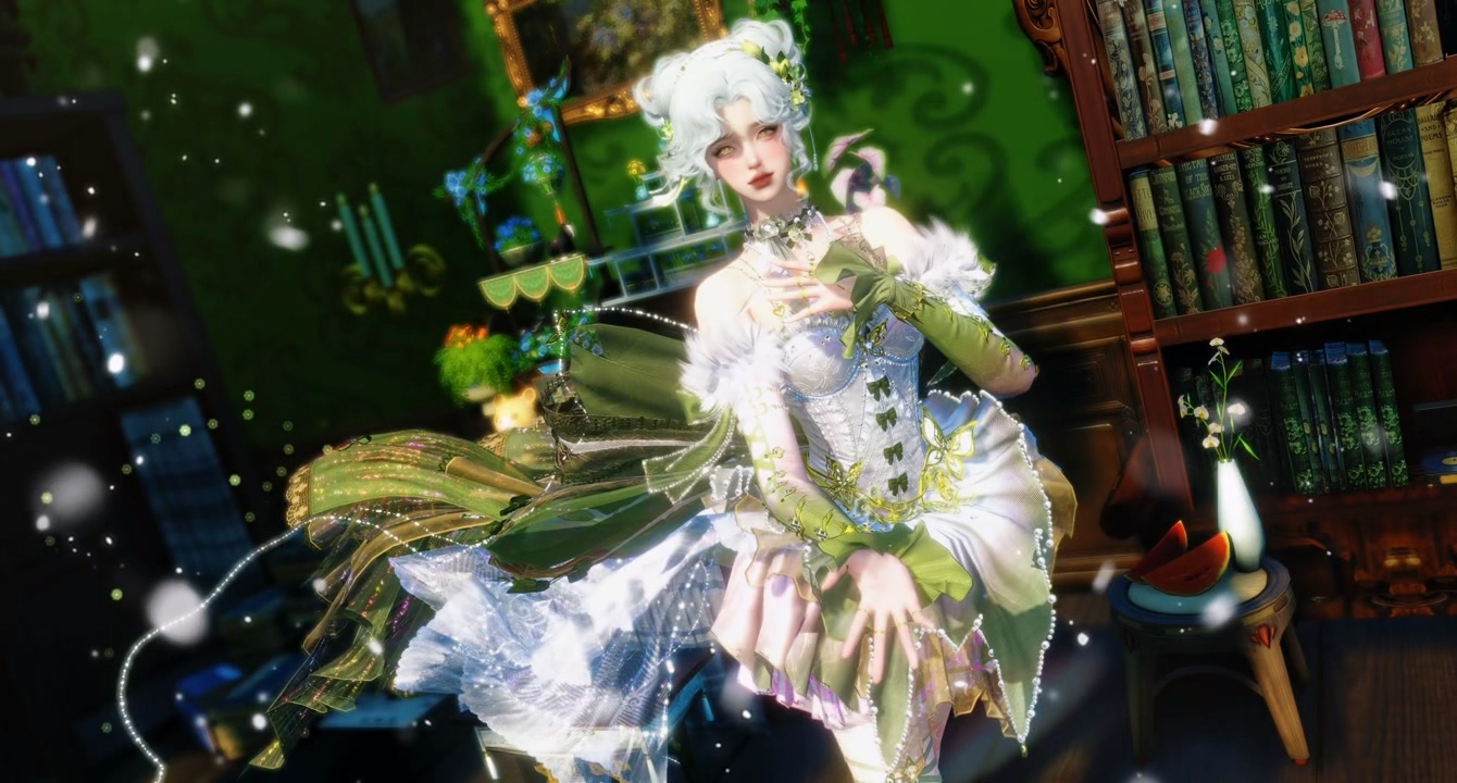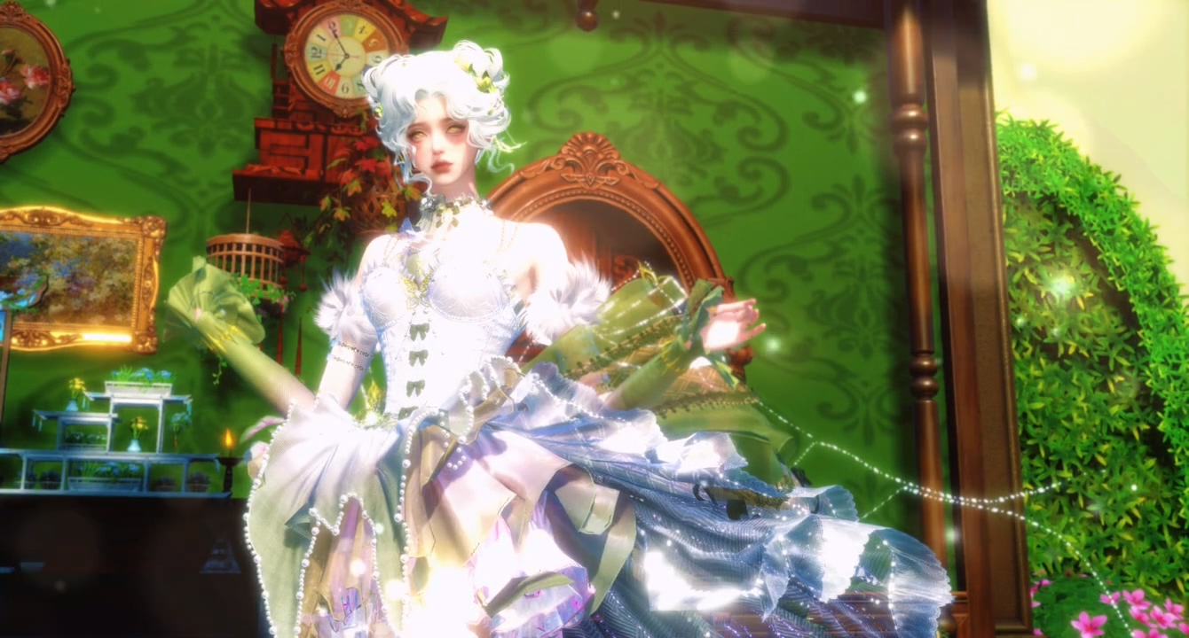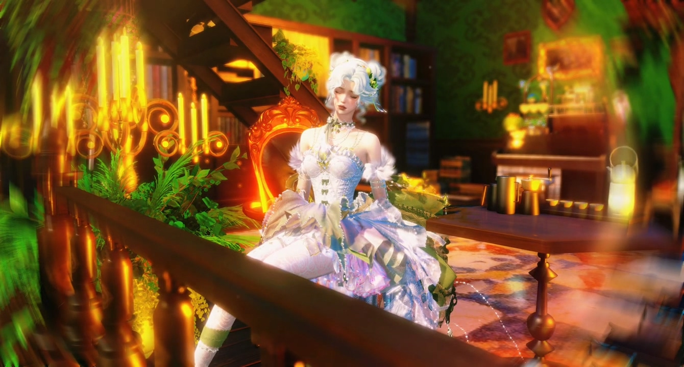 置景复古的庄园内,少女闭上双眸,仿佛在倾听着古典乐曲。