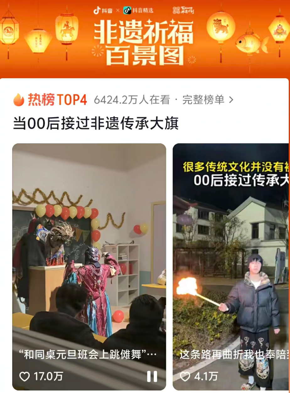 “人有难,方有傩,傩舞起,百病消。”这种基于游戏内容又充满创意的演绎,赢得了广大抖音用户的认可。年轻人用行动证明,非遗传承可以很酷很时尚。