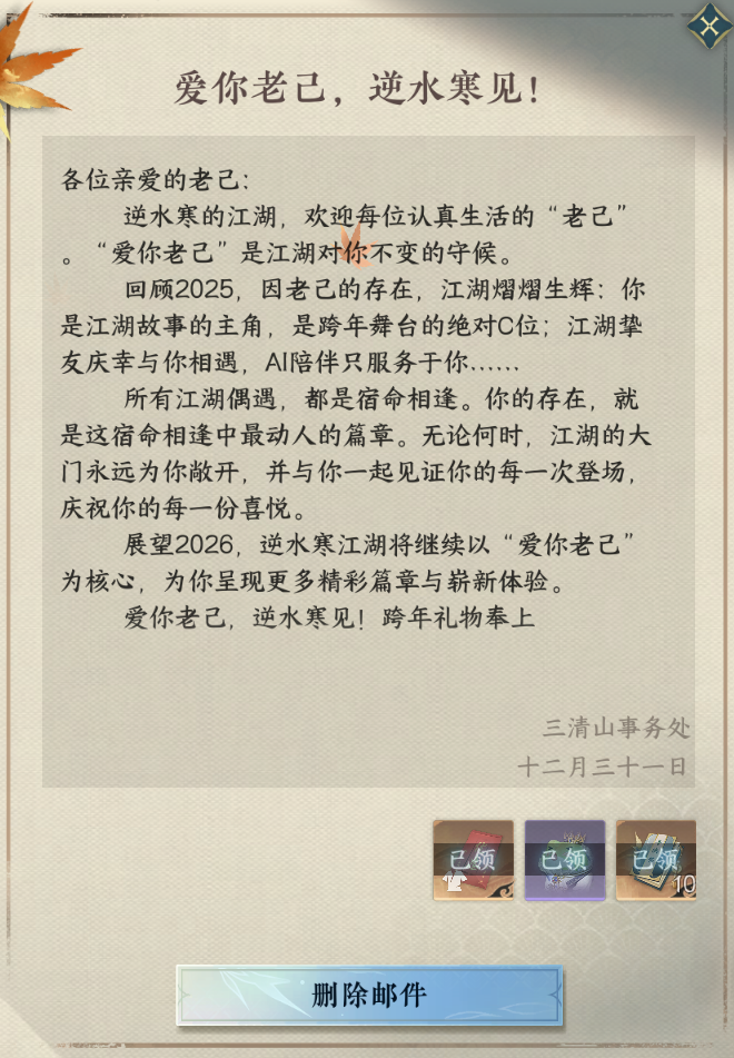 从2025到2026,逆水寒的跨年演唱会陪伴着大家奔向新的美好。