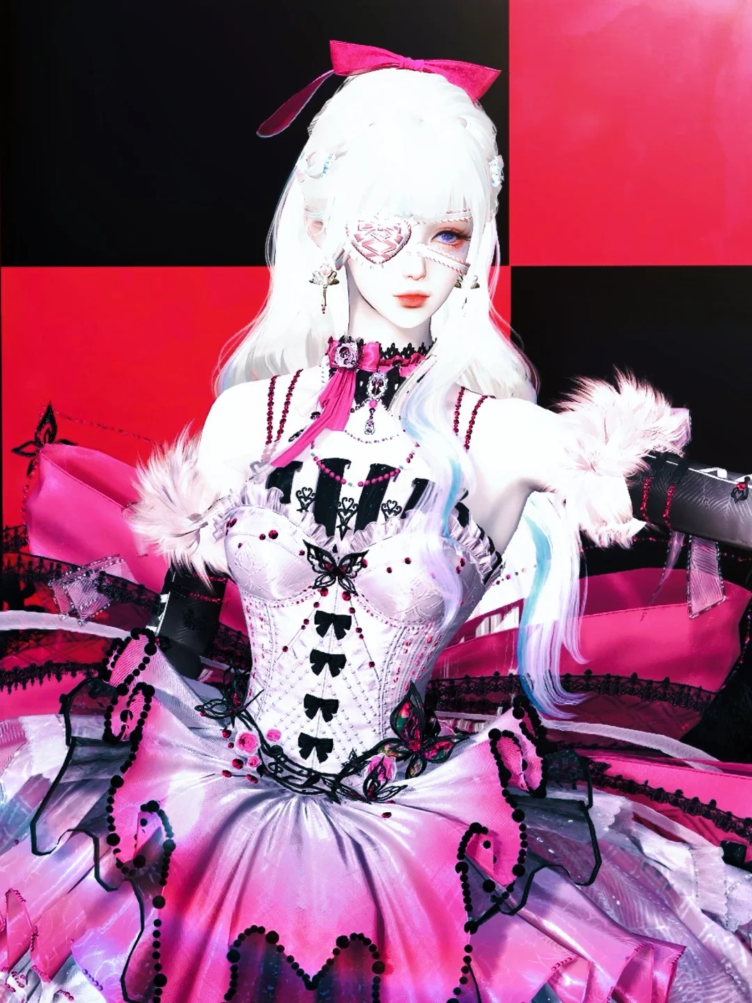 腰后的硕大蝴蝶结,是整身造型的点睛之笔。行走时便随步履轻轻摇曳,带着几分灵动的娇俏。