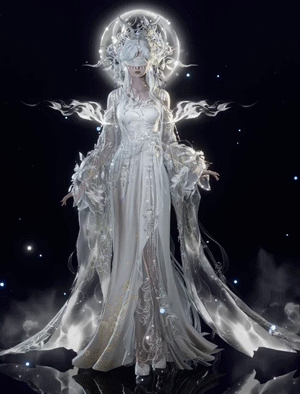 淡金色的长裙随着身姿翩翩起舞,宛如温柔的神女降临人间。