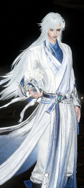 霜色长发随风垂落,青白衣袂如云舒展。眸光沉静,似敛尽江湖风雨,一身侠气隐然而生。