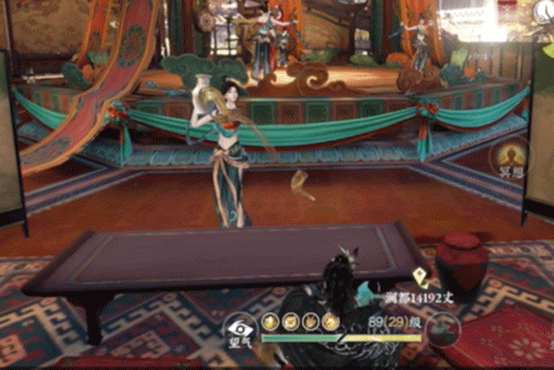 ▷属于“苏幕遮”的顶级排面。如果逛累了,推荐去(1585, 1163)这个座位坐下。只要一落座,旁边的胡旋舞女就会来为您斟酒。不知道有没有同门享受过这无比真实待遇呢?